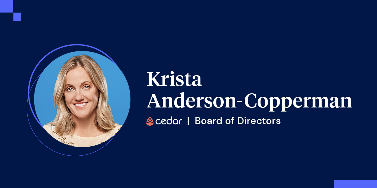 “In our search for a new board member, we were looking for someone who could complement our vision of a healthcare system that is built for consumers, ” said Florian Otto, CEO and Co-founder of Cedar. “Given Krista’s career building industry-defining customer success organizations within hypergrowth companies, we know that she will be a crucial asset to our business, helping us serve our clients and their patients better. I’m so pleased to welcome Krista to our Board of Directors, and look forward to working with—and learning from her—as we continue to grow and scale.”