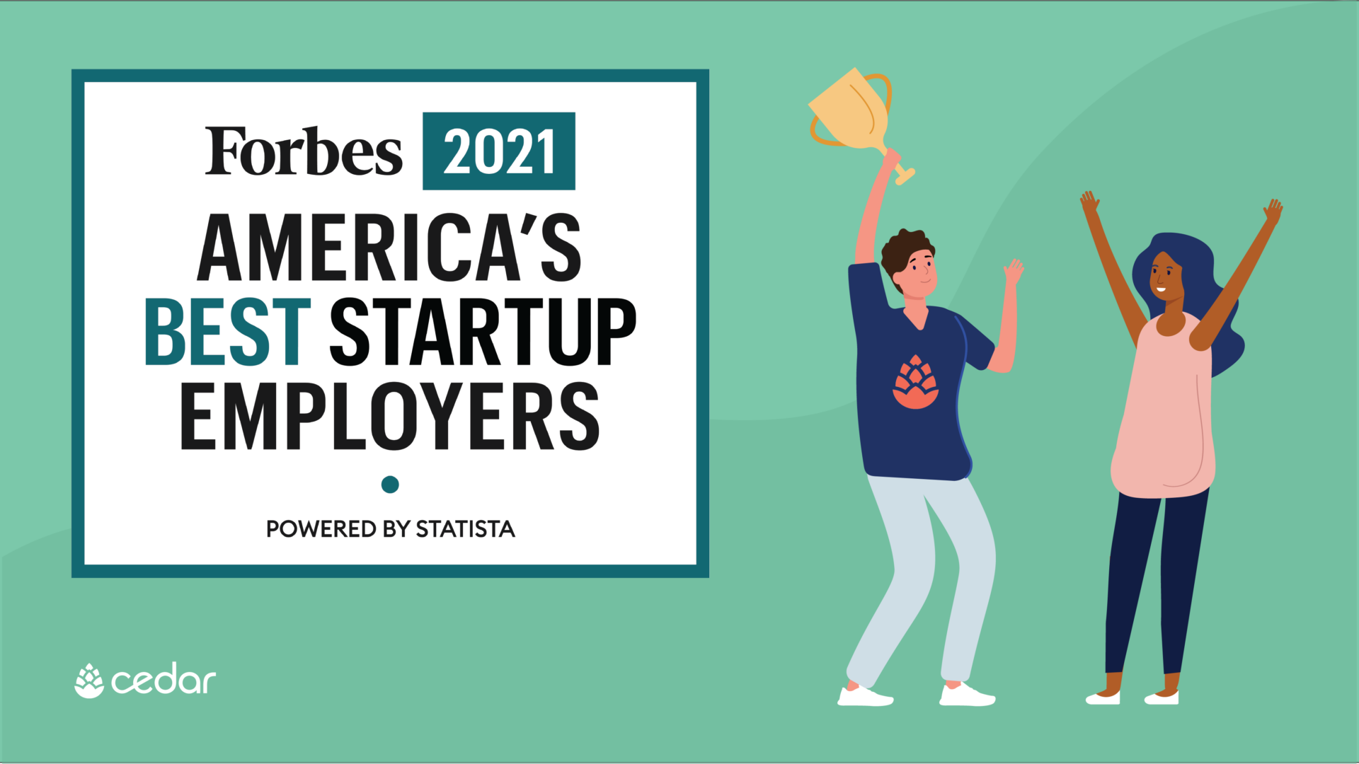 Cedar, a leading patient engagement and financial technology platform, has been recognized on the Forbes list of America’s Best Startup Employers 2021. This prestigious award is presented by Forbes and Statista Inc., the world-leading statistics portal and industry ranking provider. Cedar is ranked 68 out of the 500 companies recognized, and in the top 5 healthcare companies.